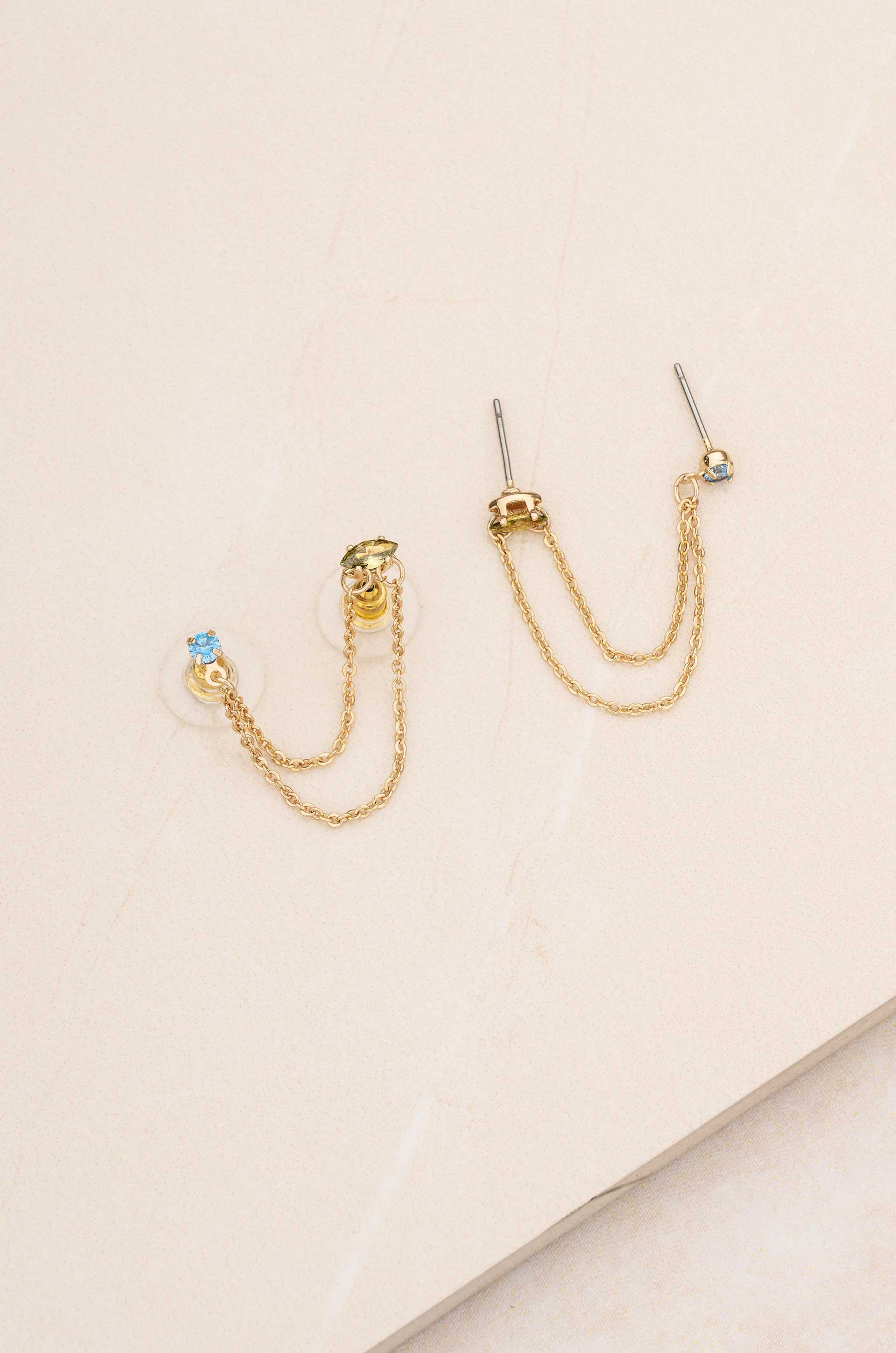 Double Piercing Chain Dangle Earrings