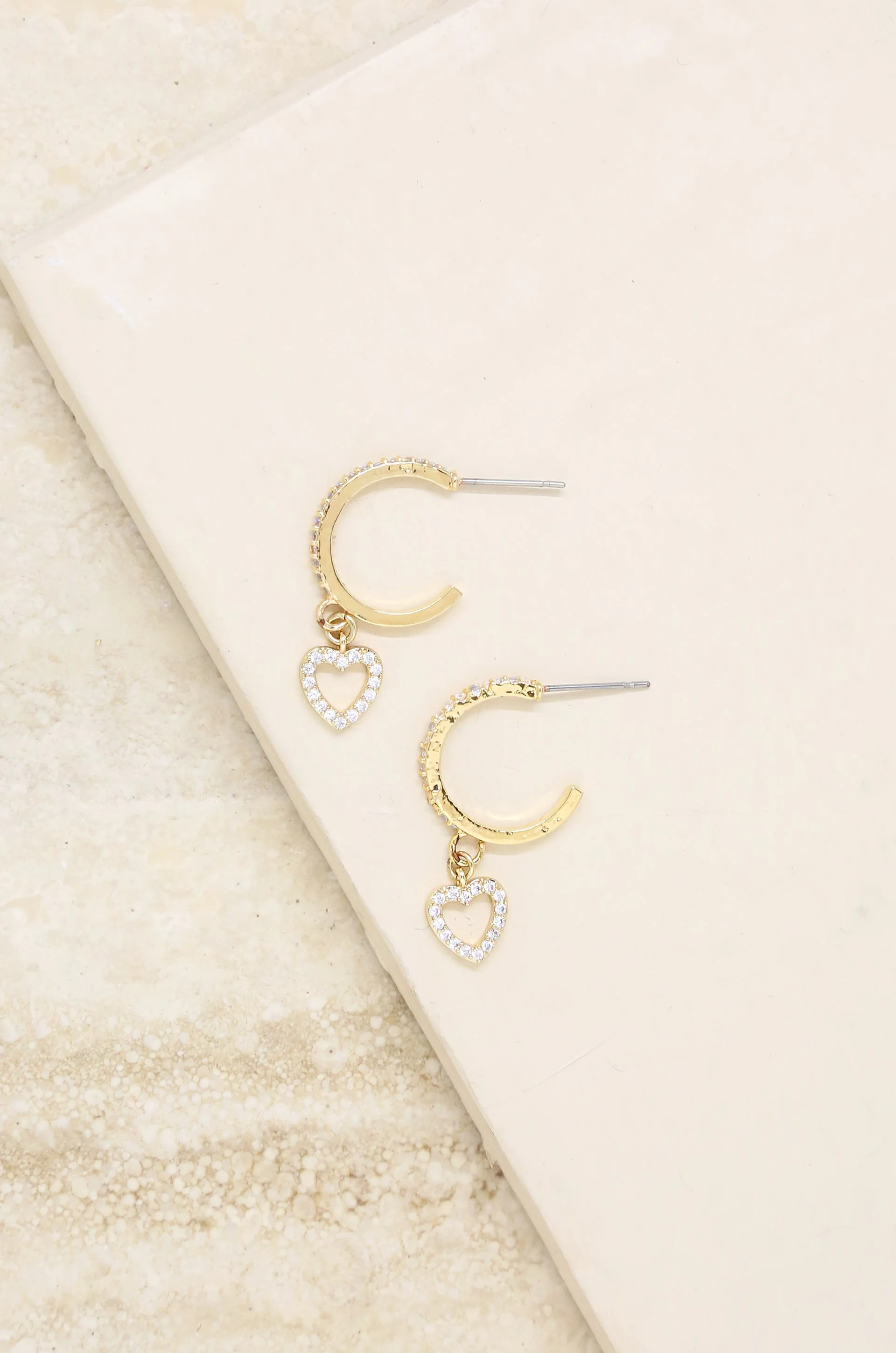 Small Crystal Heart Dangle Hoop 18k Gold Plated Earrings