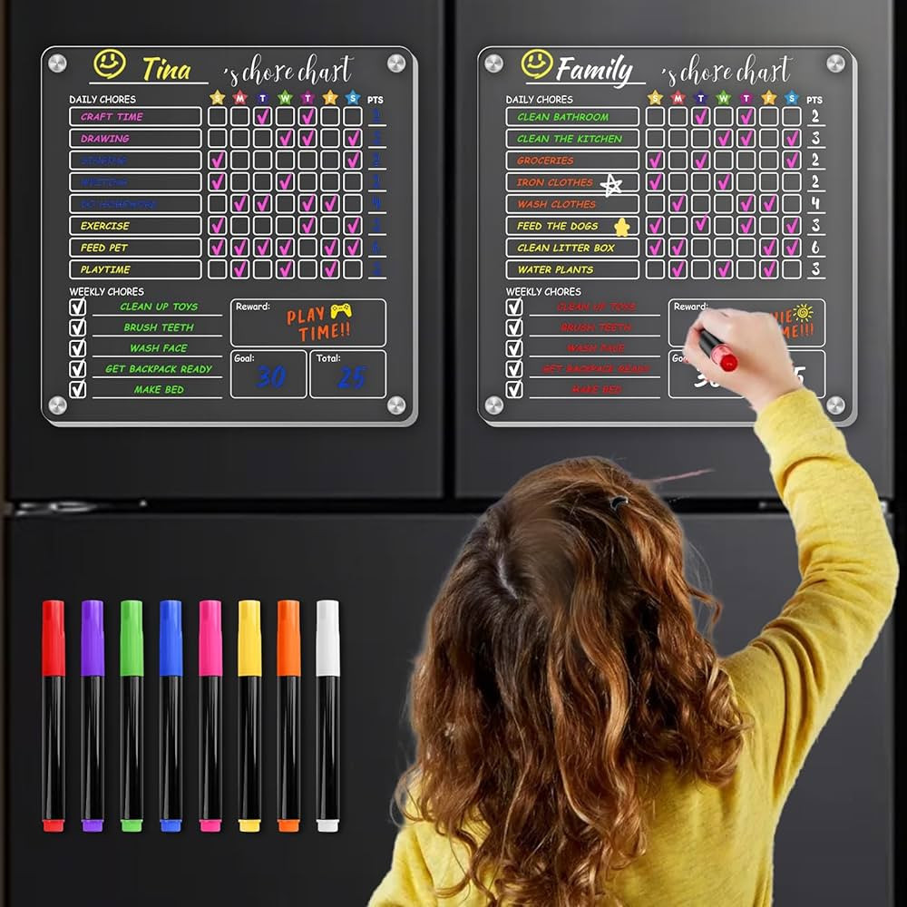 Magnetic Chore Chart for Multiple Kids, 2 Kids Chore Chart for Refrigerator, Dry Erase Acrylic Ch...
