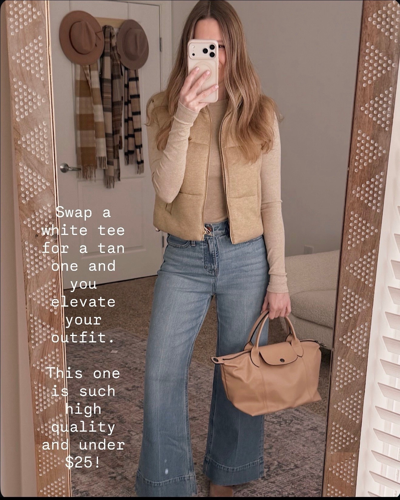 Topshop exposed seam crewneck - Black and white with cognac and faux leather leggings #LTKSeasonal #LTKunder100 #LTKshoecrush