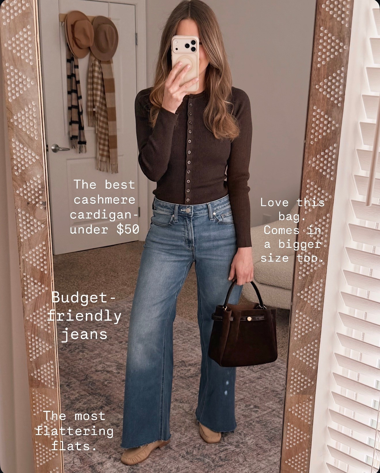 These are the kind of everyday basics I reach for when I want to look pulled together without overthinking it. The brown cardigan with classic denim works for errands, dinner plans, and everything in between.