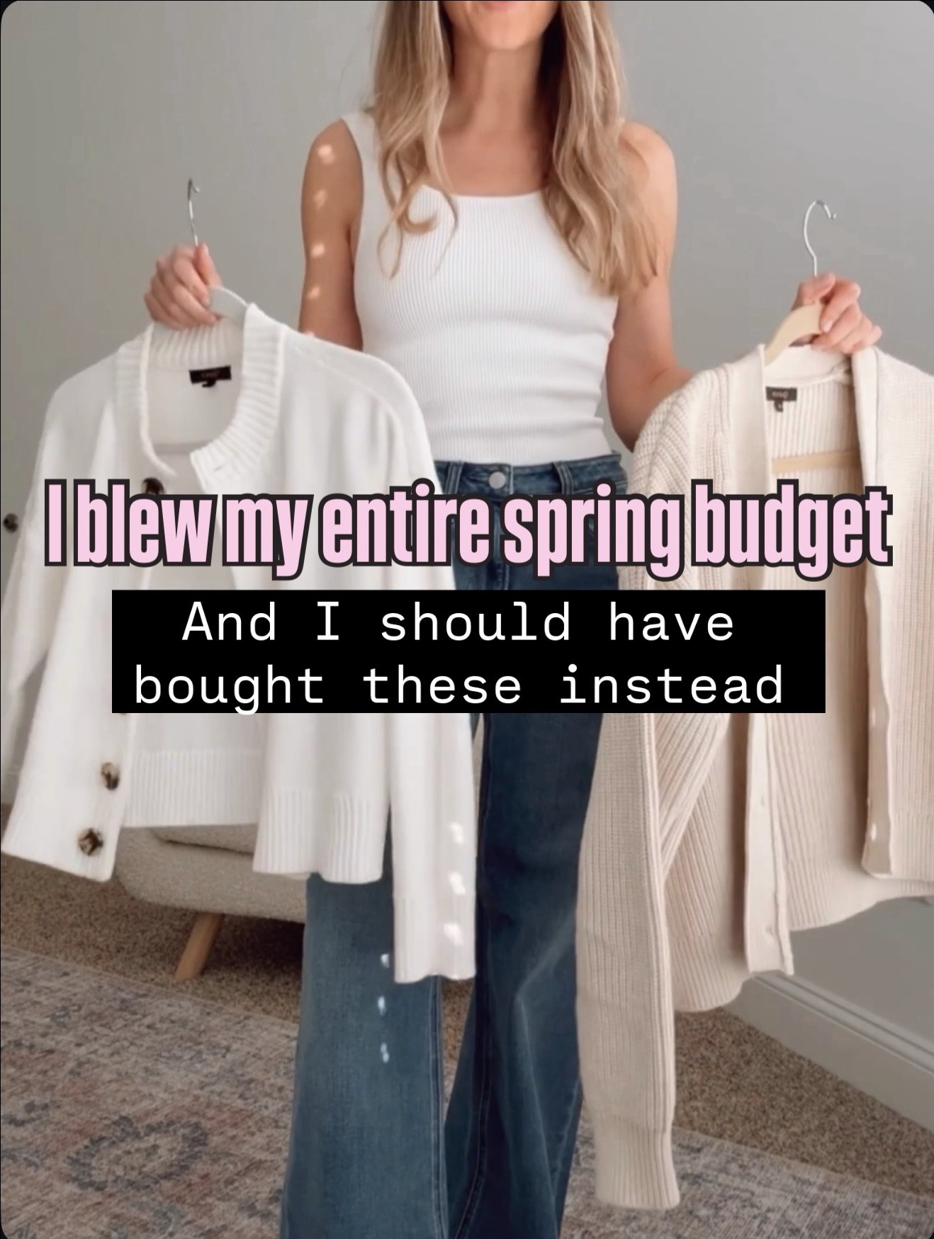 sweater tank outfit women, sleeveless knit top women, casual chic outfit women, spring layering outfit women, sweater tank and white jeans outfit, everyday neutral outfit women, affordable wardrobe staples women, effortless casual style women