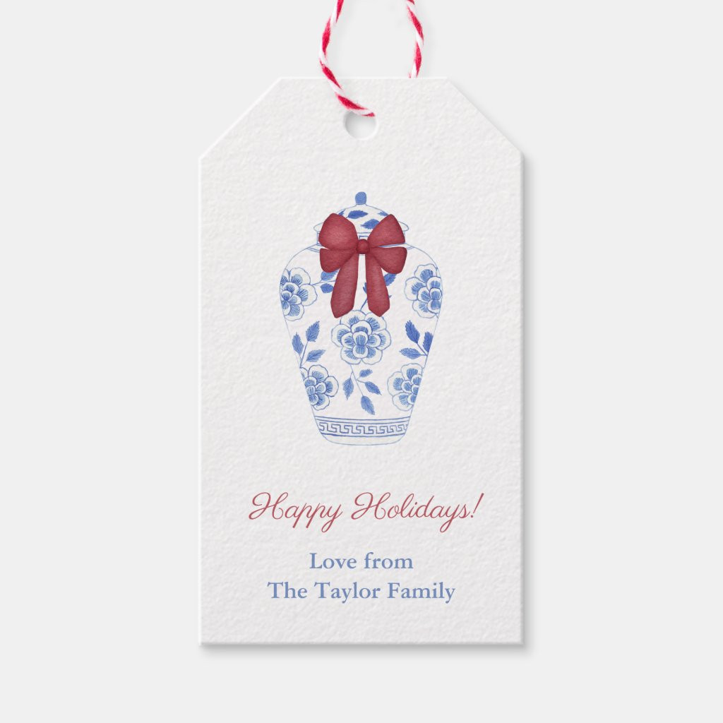 Elegant Red Bow On Ginger Jar Happy Holidays Gift