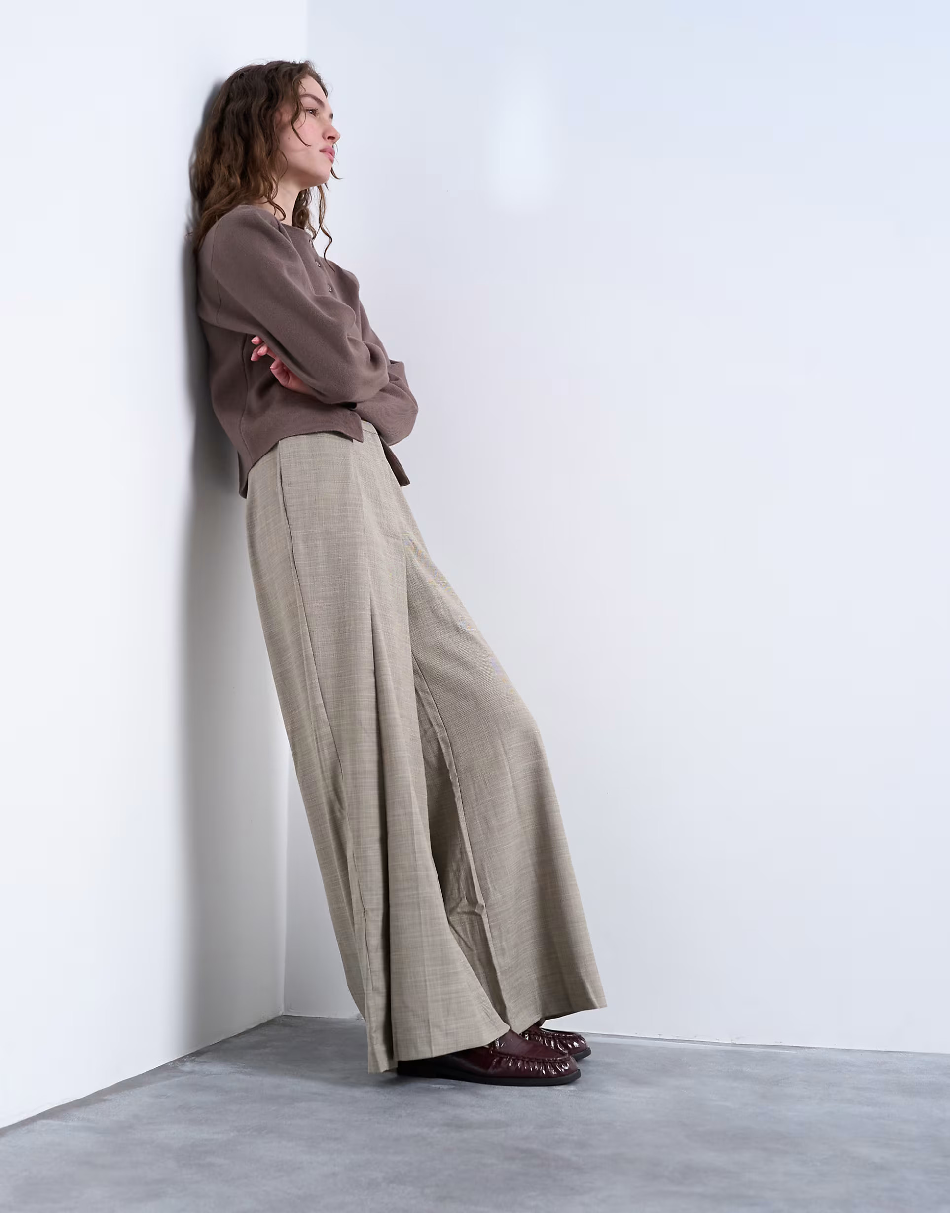 Topshop premium wrap around extreme wide leg tailored trousers in stone - STONE