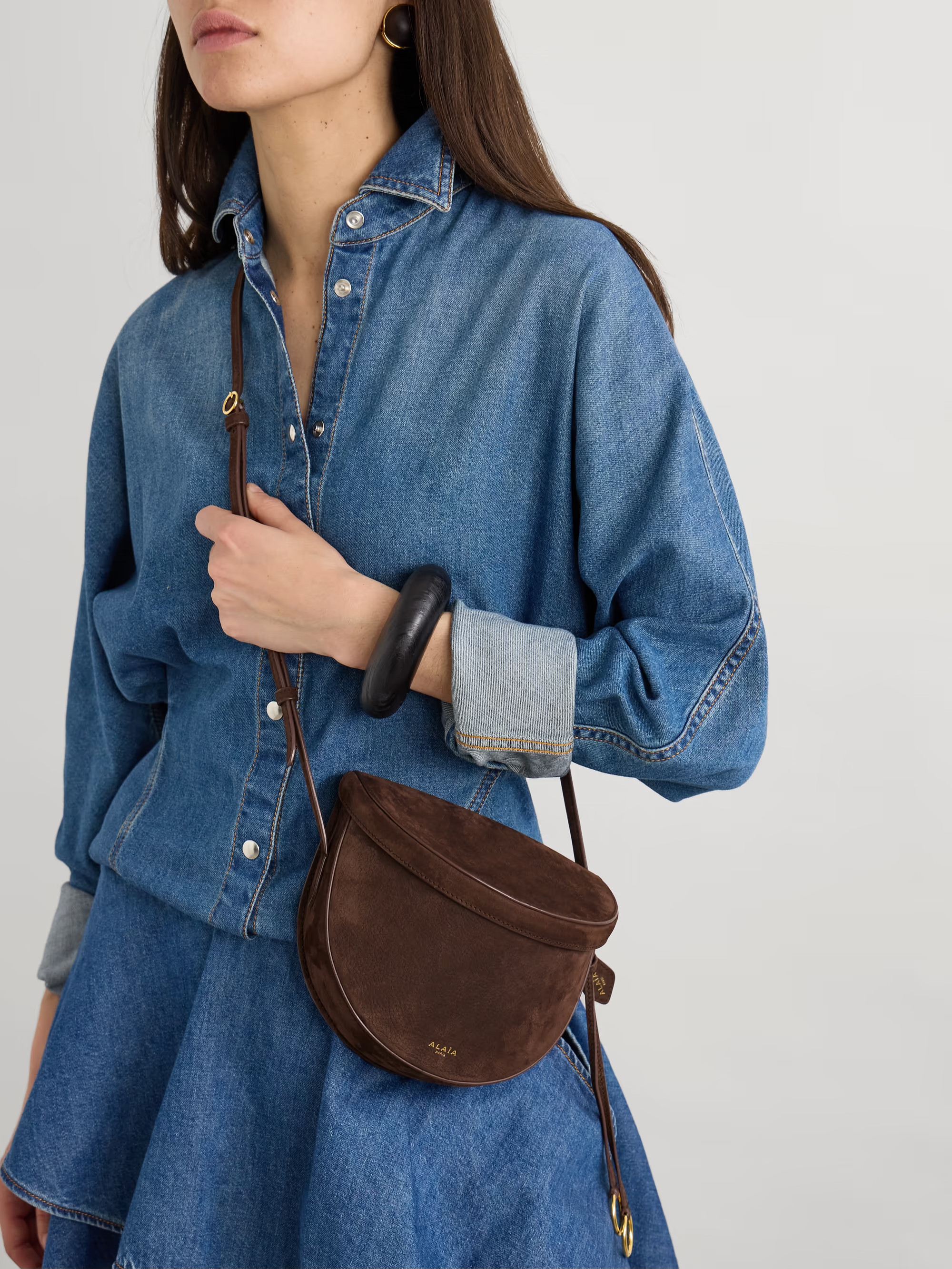 Le Click leather-trimmed nubuck shoulder bag