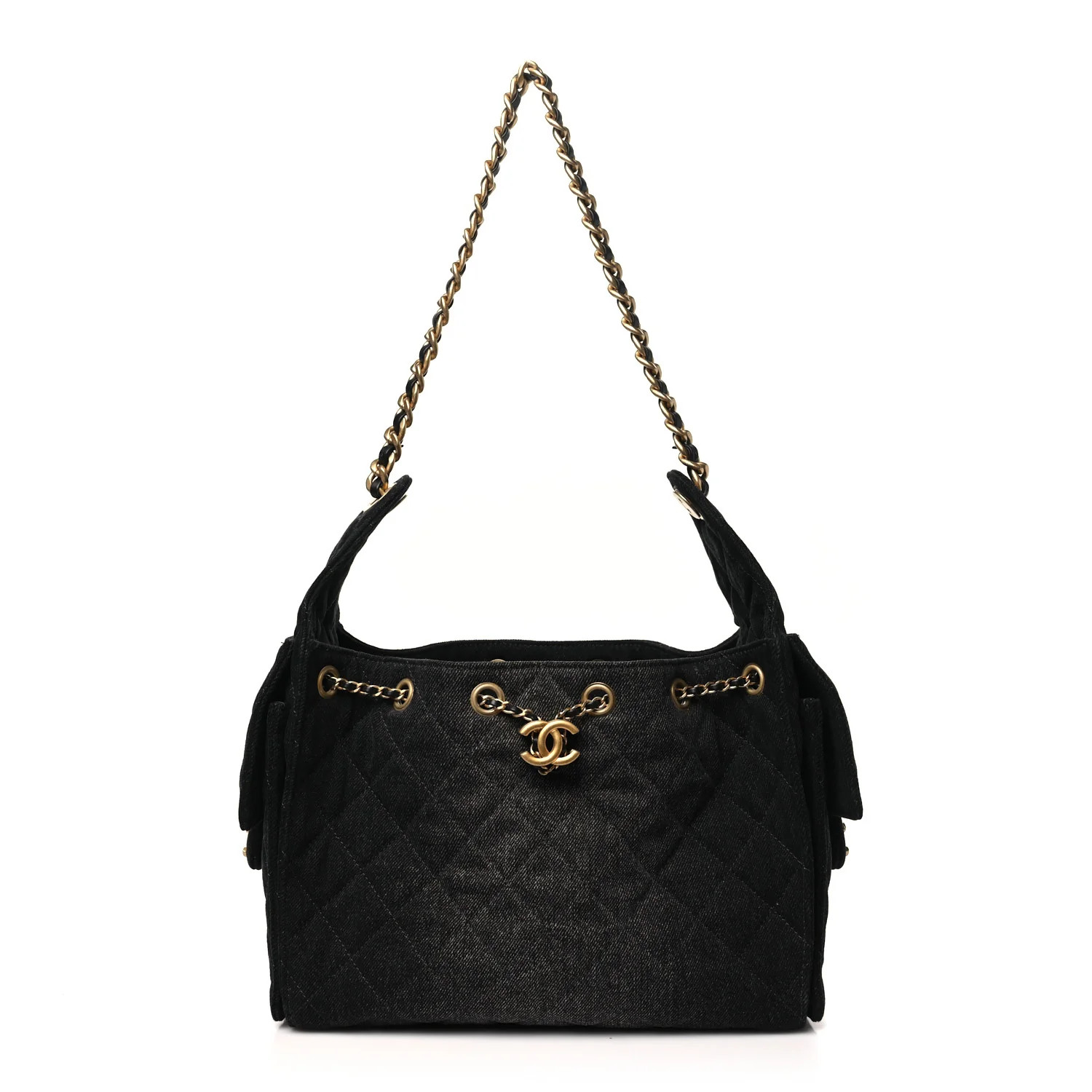 Denim Quilted Small Chanel 25 Handbag Black