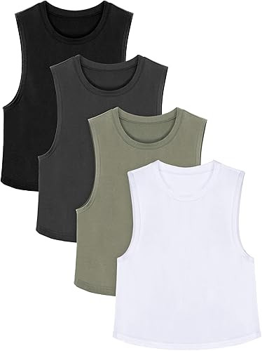 4 Pieces Basic Crop Tank Tops Cotton Sleeveless Racerback Tank Top Women Sports Top