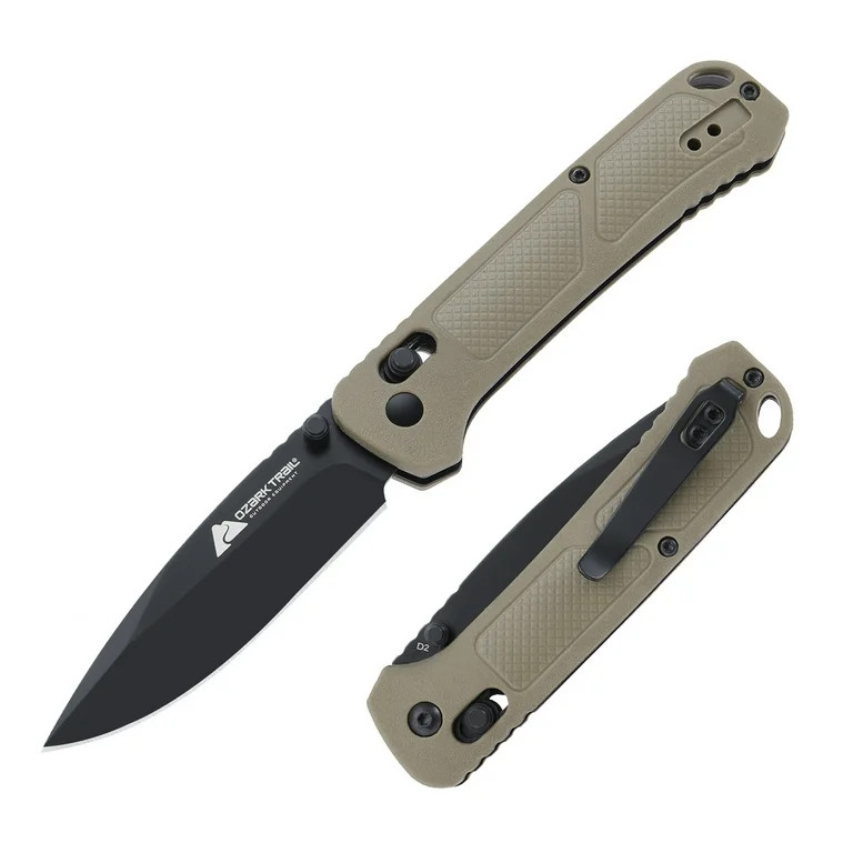 Ozark Trail 7.5 inch Folding Knife,D2 Blade,Ball Bearing,OD Green Handle, Slide Lock Pocket Knive...