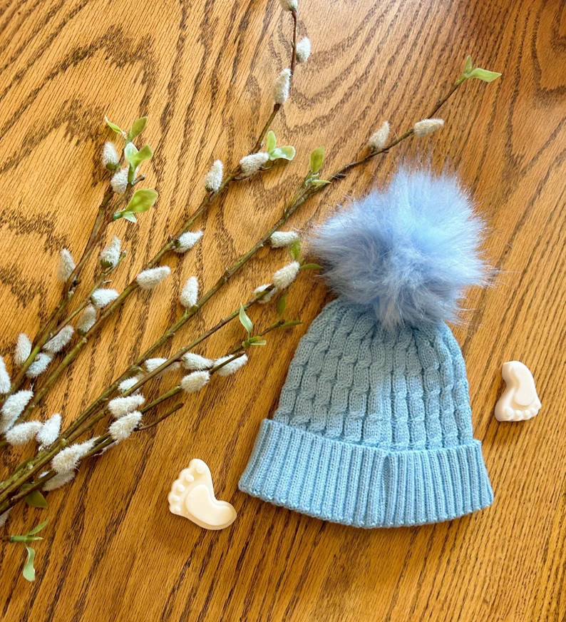 Cable Knitted Pom Hat, baby hat, baby Pom Pom, knitted baby hat, babies first hat, winter baby ha...