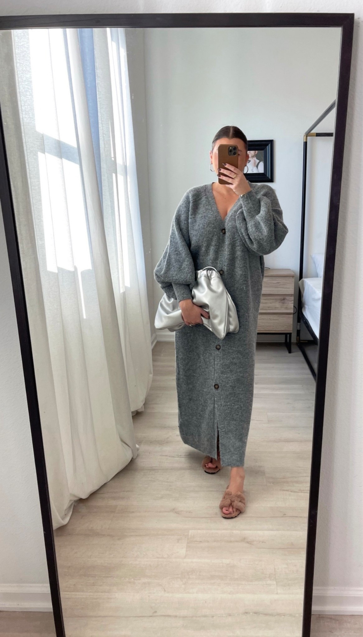 ARRANGE knit balloon sleeves button up maxi dress in gray | ASOS (Global)
