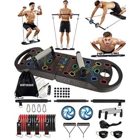Upgraded Push Up Board: Multi-Functional 20 in 1 Push Up Bar with Resistance Bands, Portable Home Gy