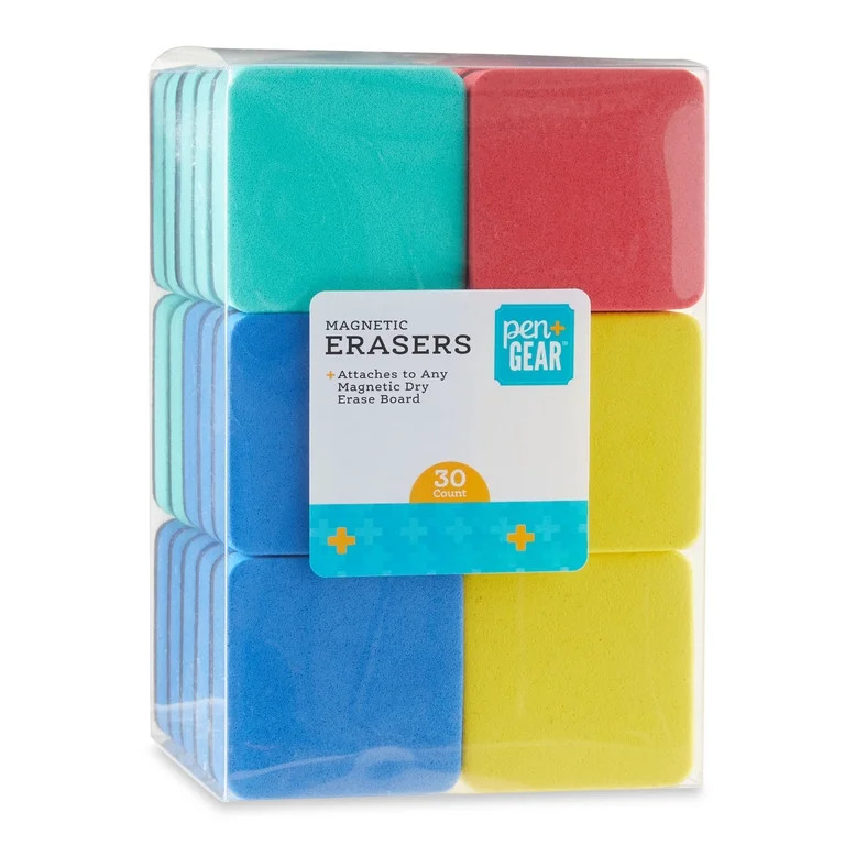 Pen + Gear Magnetic Mini Whiteboard Erasers, Assorted Color, 30 Count