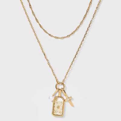 Bella Uno Bellissima 14kt Gold Dipped Flowers/ Cross/ Pearl Charm Layered Necklace Extender