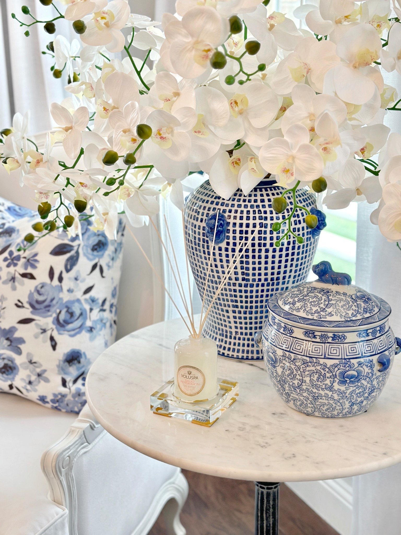 New tjmaxx and Marshalls finds! Lots of pretty blue and white pieces, outdoor finds coastal decor, grandmillennial π patio decor, blue outdoor cushions, white fire pit, melamine plates, timeless chic decor, ginger jars, white vase, footed vases, ruffle bedding, blue and white quilt tjmaxx deals home decor blueandwhite LTKsalealert LTKhome LTKunder50