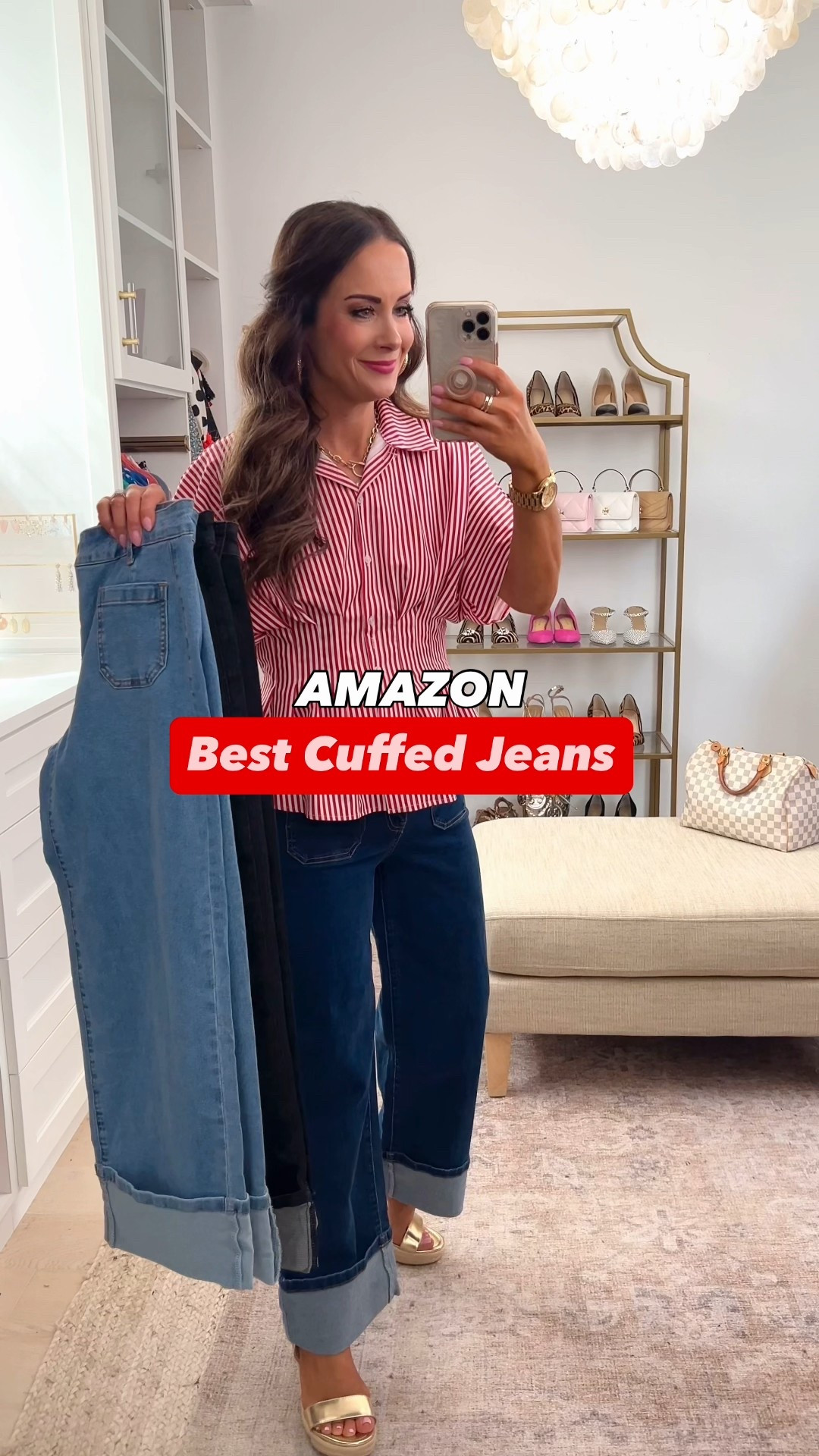 New sweater & jeans! Scroll to shop! Size down if between sizes in jeans. Wearing one size down here so they look less relaxed than on the model. More colors too! Follow for more! 🥰 ~ Lindsay & Whitney