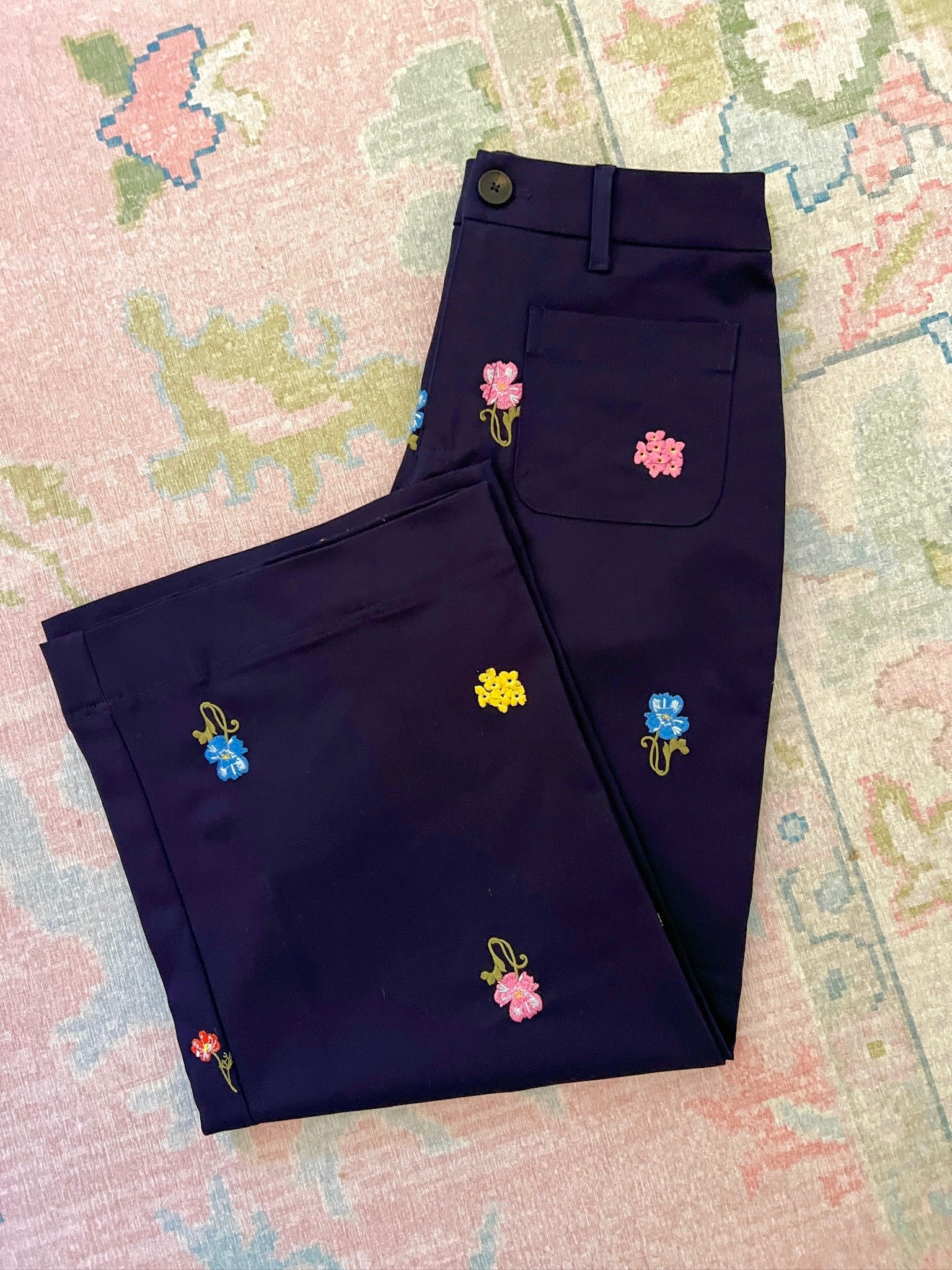 We have the dark blue in size S. Looks like Anthro but it’s Walmart! If between sizes than you could size up but otherwise pretty true to size
