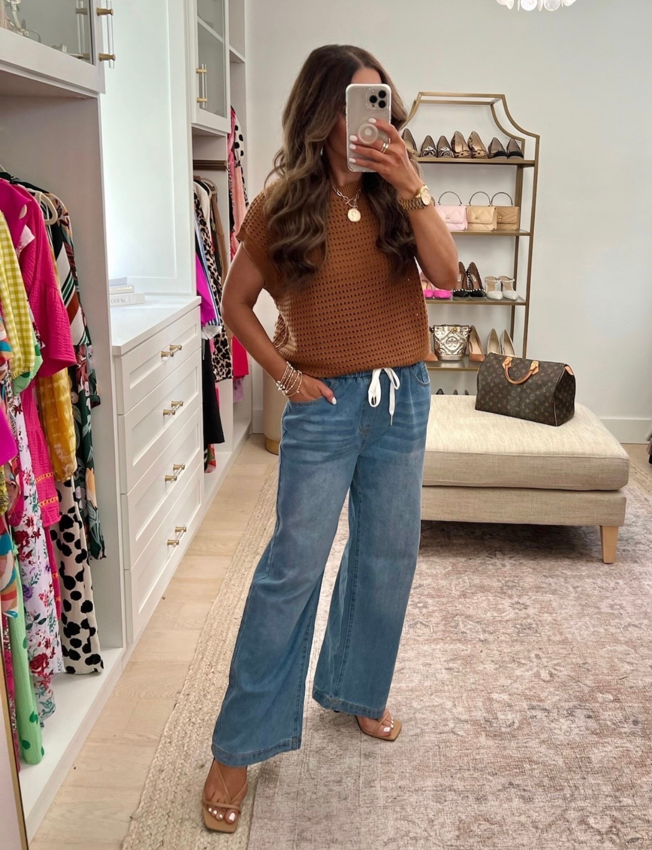 Cutest new crochet top & jeans! Scroll to shop! Follow us for more! ❀️