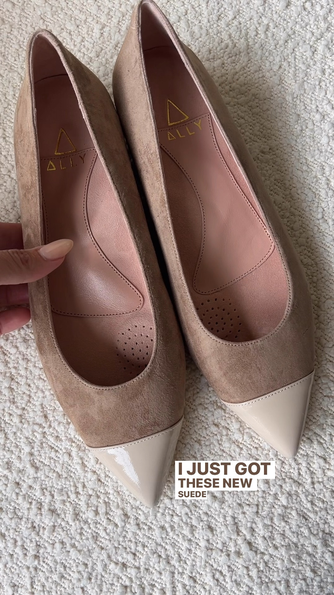 Tenacious Tan Suede with Tender Taupe Patent Leather Cap Toe Flat | ALLY Shoes