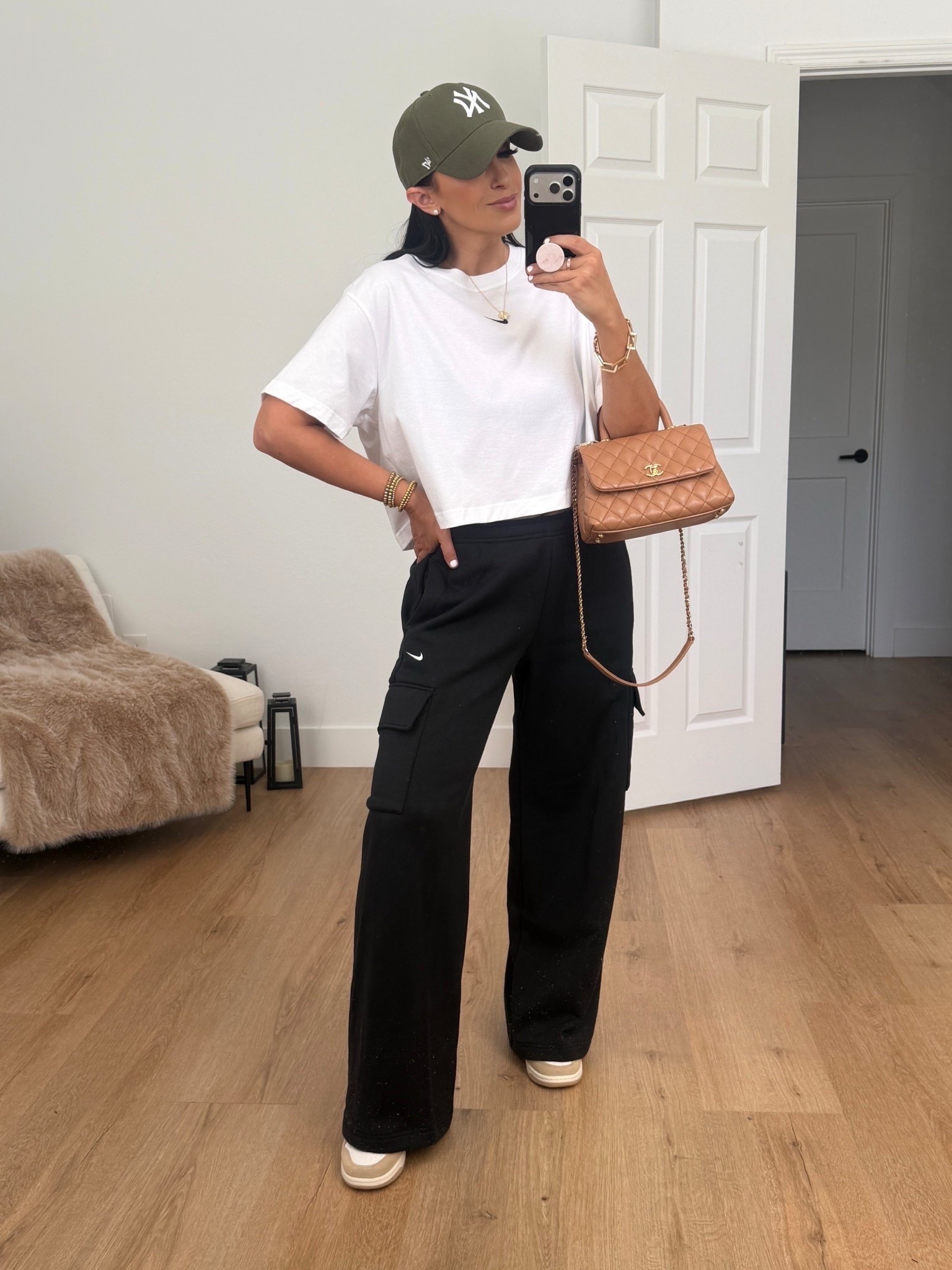 Nike Sportswear Phoenix Fleece Women's Cargo Sweatpants wearing size medium. Free People tee.