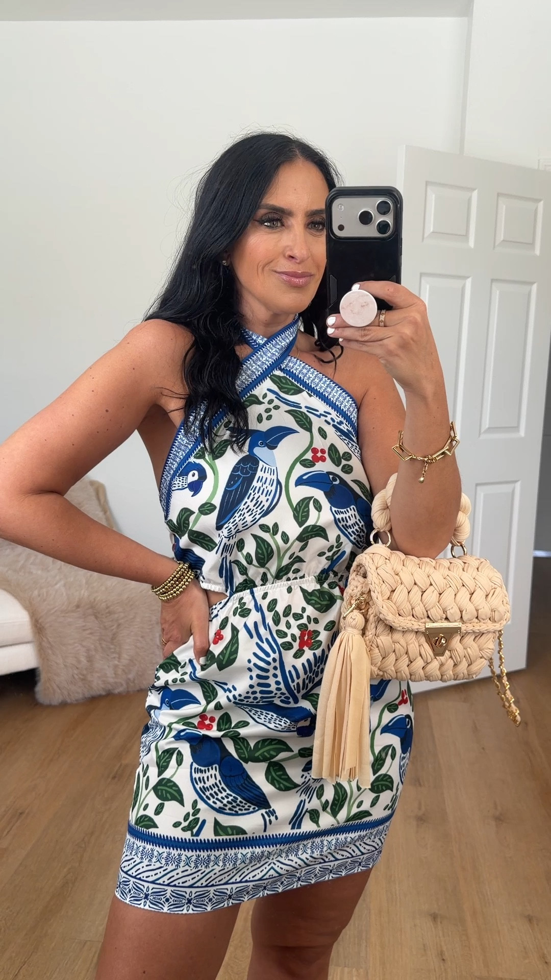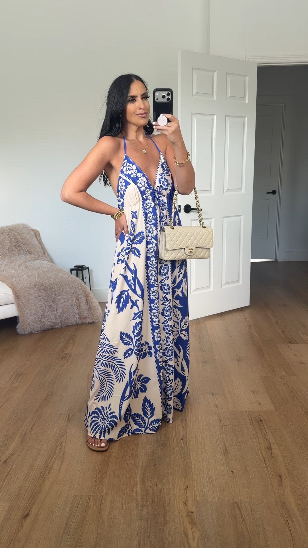 Women's Backless Dress Tropical Vacation Outfits Halter dress wearing size medium.