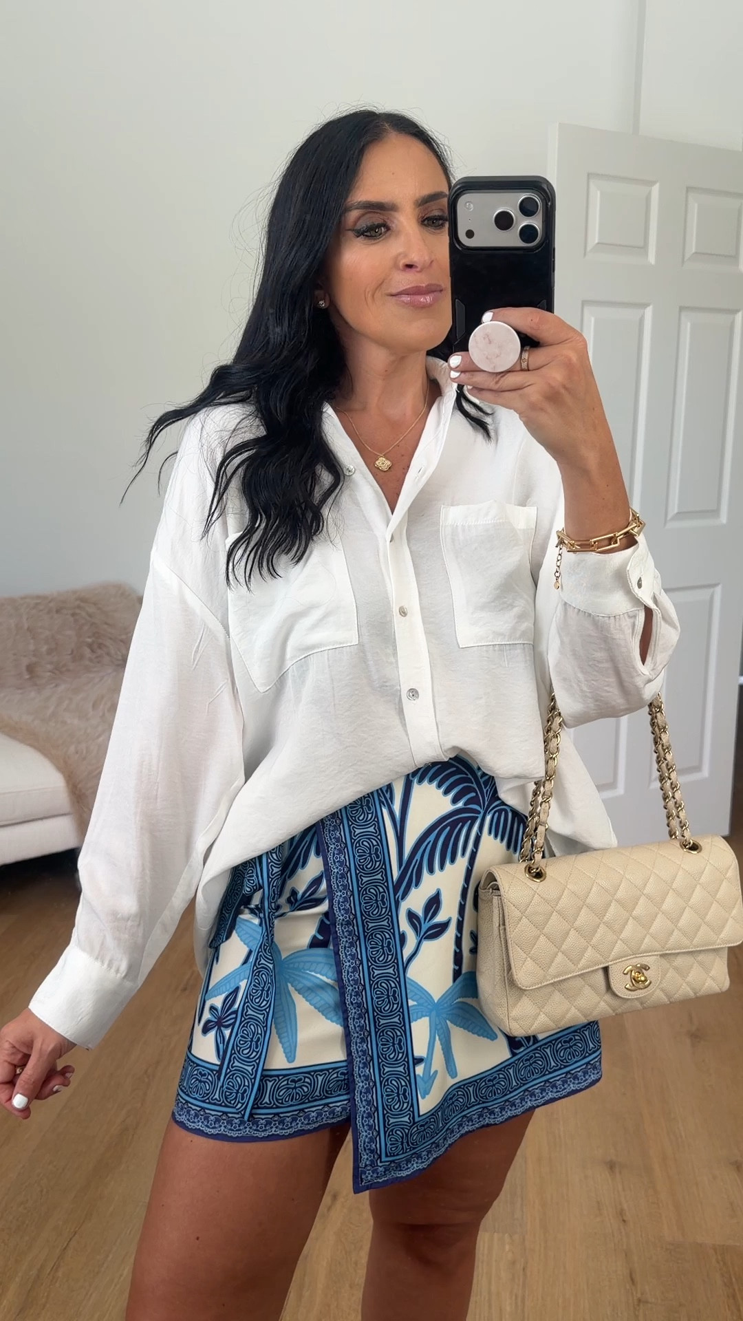 Women's Summer Boho Wrap Mini Skirt wearing size medium.