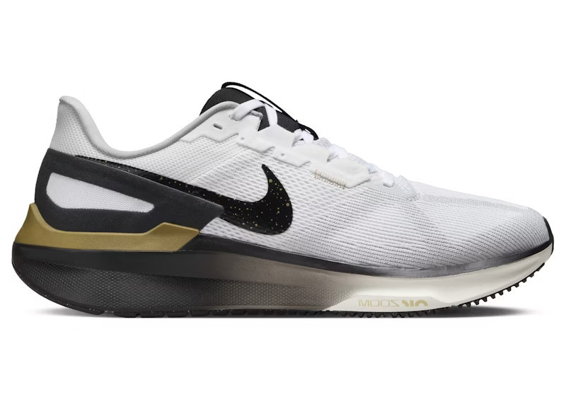 Men's Nike Structure 25 Black Sneakers in White/Metallic Gold/Light Smoke Grey