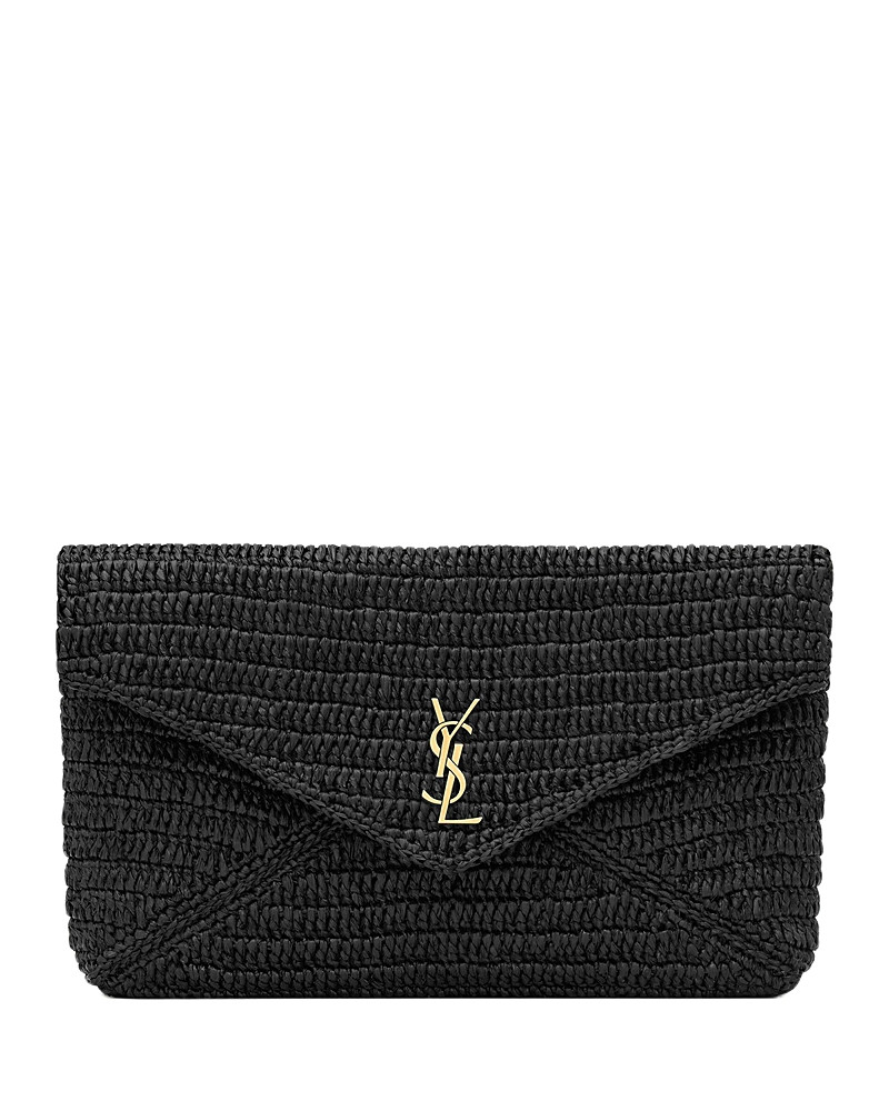 Saint Laurent Cassandre Large Envelope Pouch in Raffia