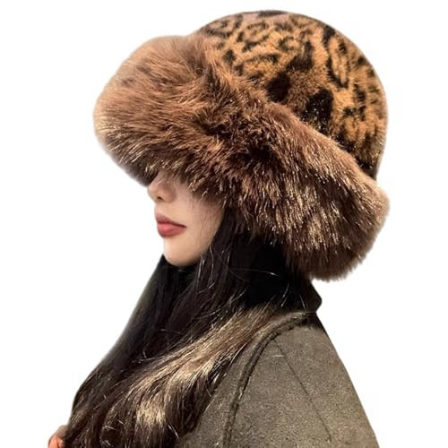 ZGMYC Faux Fur Trimmed Beanie Hats for Women Girls Leopard Print Furry Winter Bucket Hats Warm Ski Snow Hat