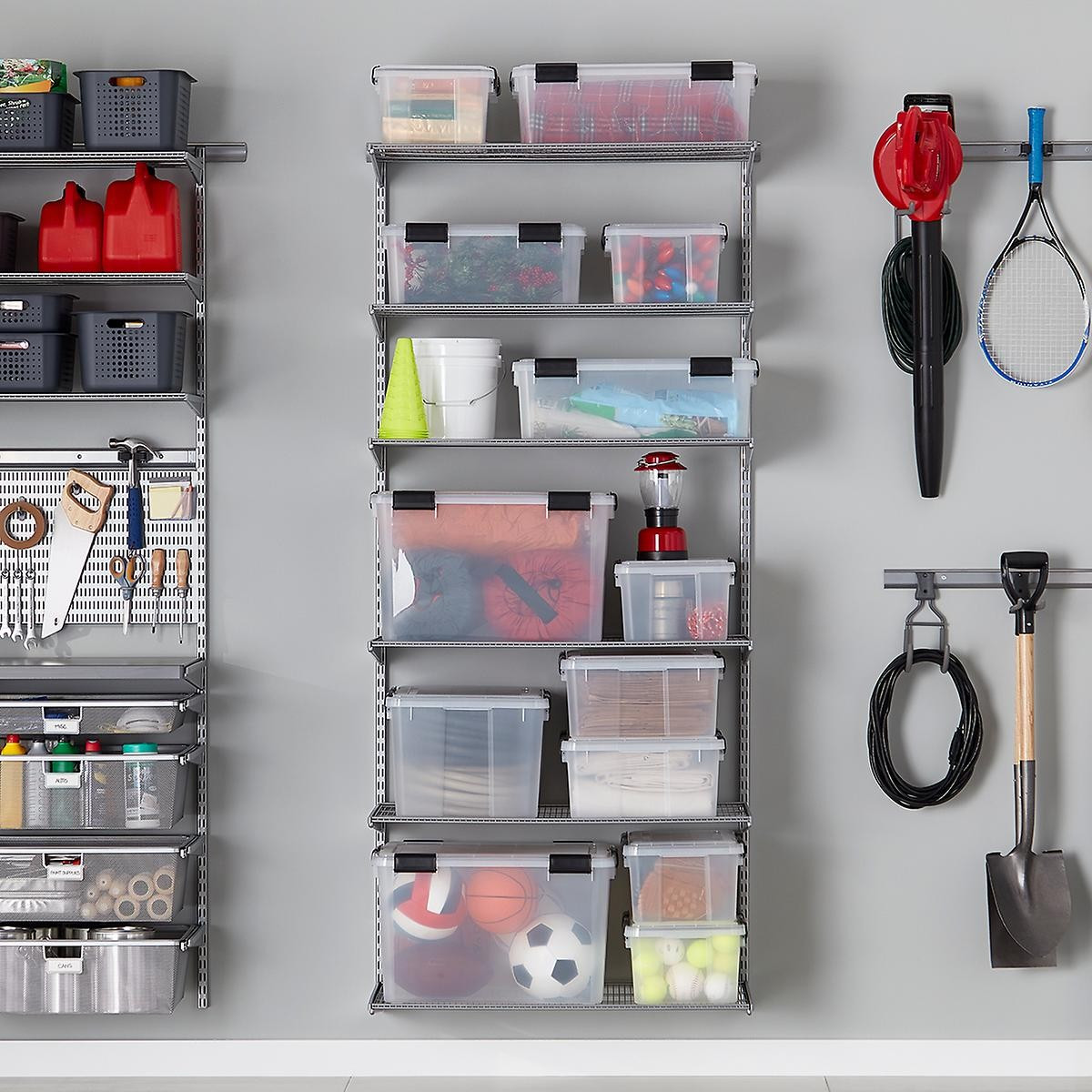 Make use of vertical storage and systemize tools, hobbies, decorations, and more!