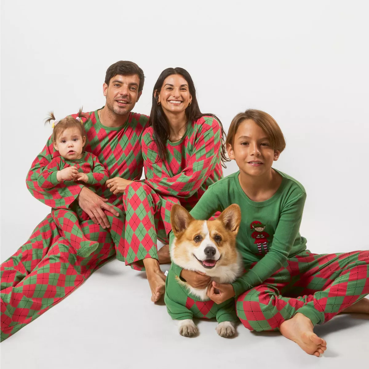 Leveret Matching Family Christmas Pajamas Red and Green Argyle