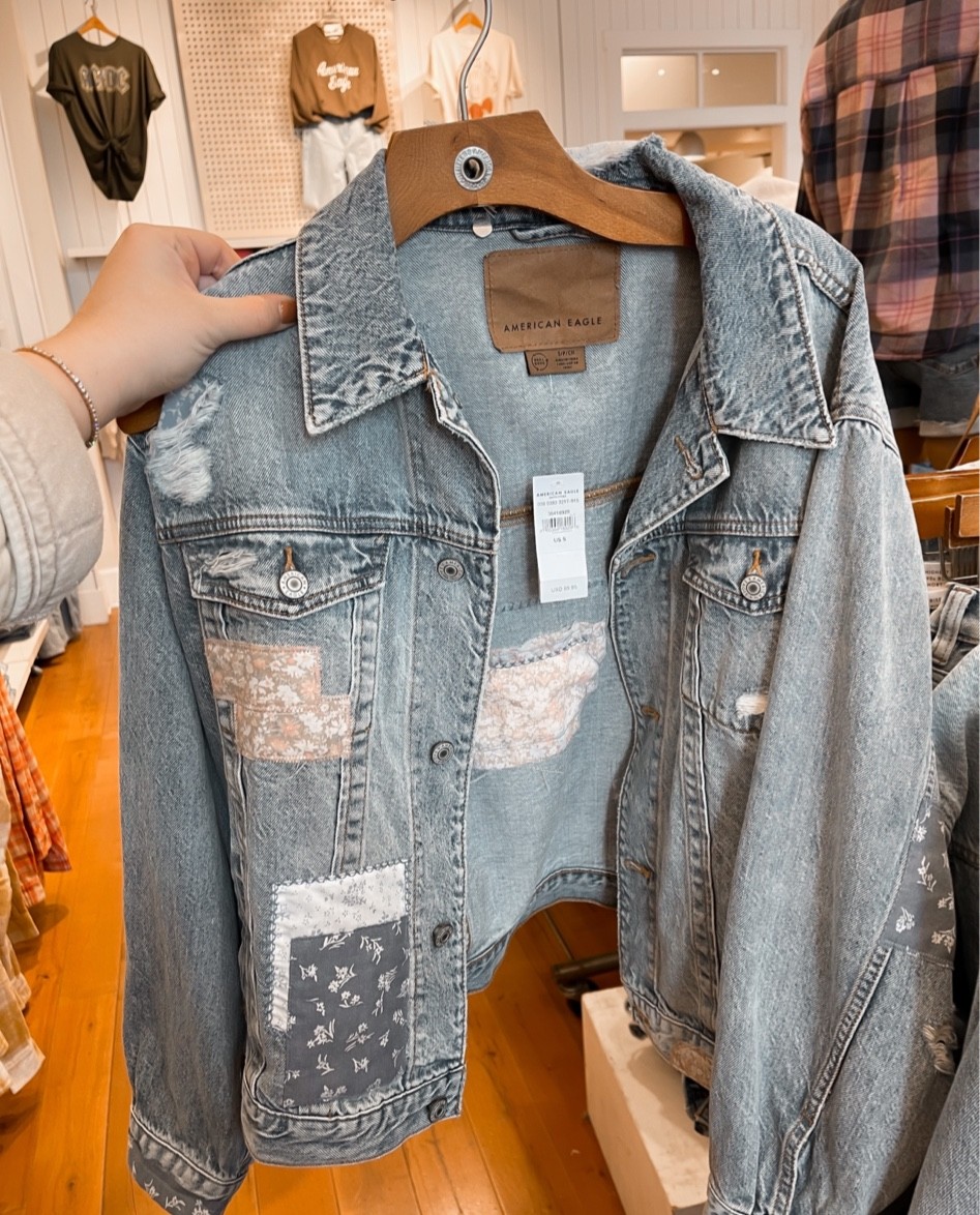 AE '90s Boyfriend Oversized Patchwork Denim Jacket | American Eagle Outfitters (US & CA)