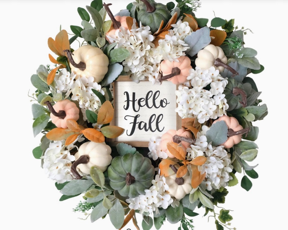 20inch Fall Wreath Pumpkin Wreath Harvest Wreath Green Leaf Wreath Hello Fall Sign Wreath Front D... | Amazon (US)