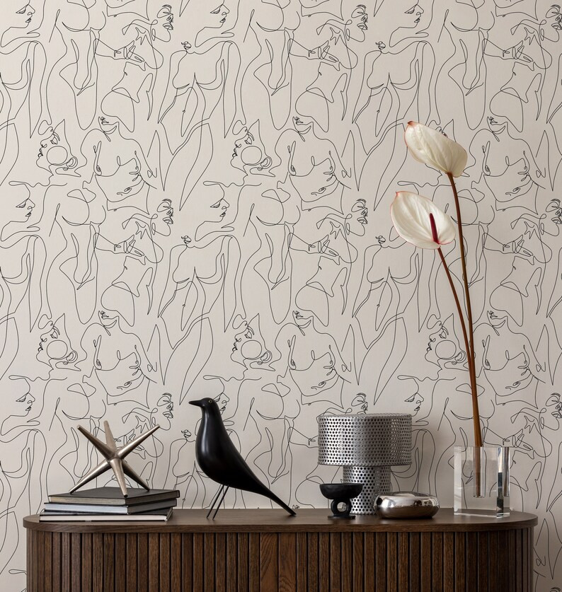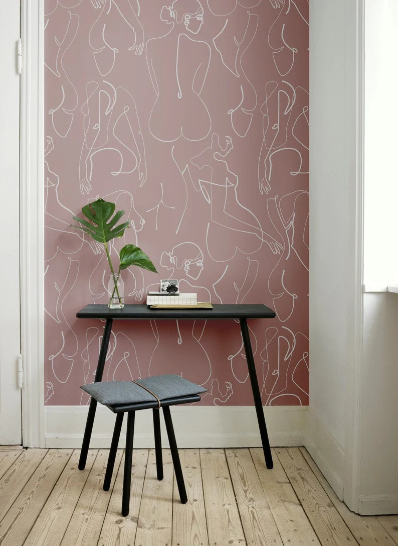 A collection of femme forward peel and stick wallpaper that give all the sapphic vibes