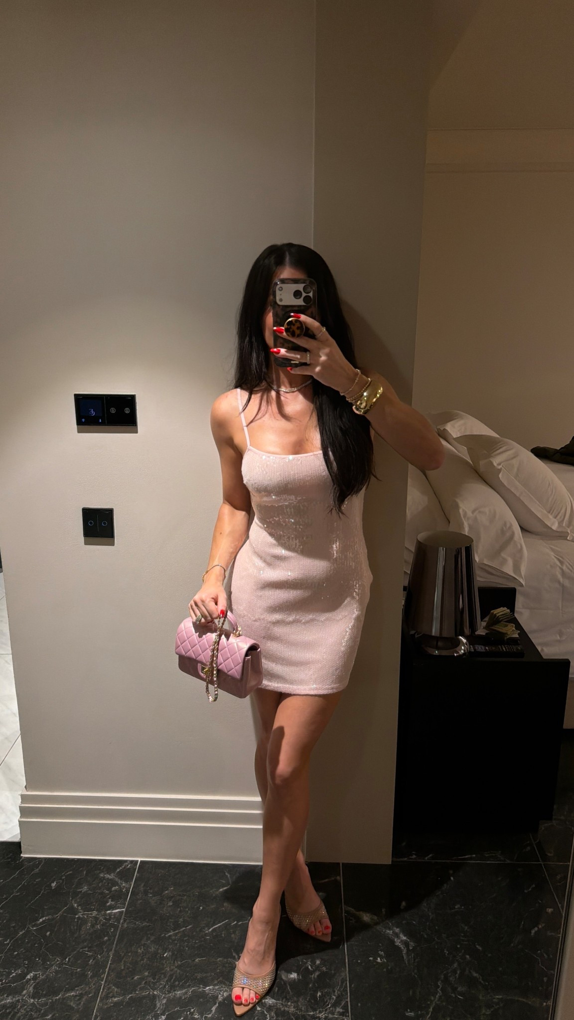 Pink sequins, mini dress from Edikted