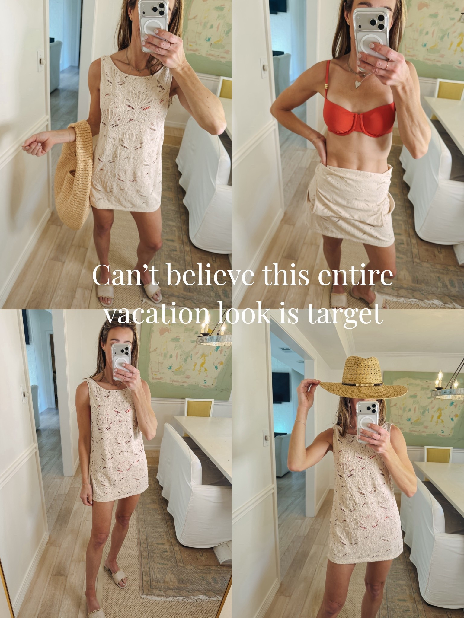 Target vacation look. Cutest coverup swimsuit bag hat and slide sandals