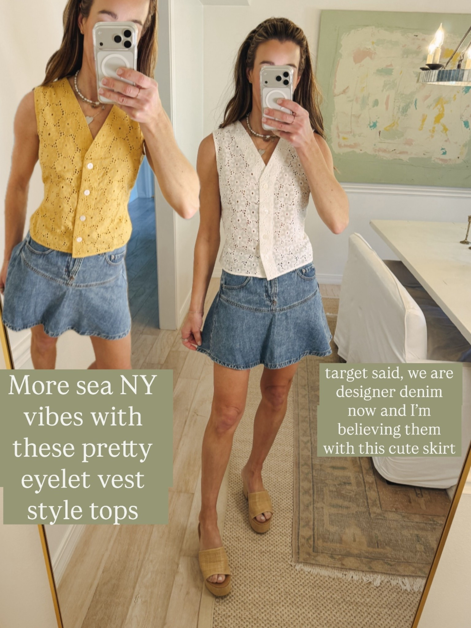 Paired the same knit vest style top from Target with the cutest denim skirt