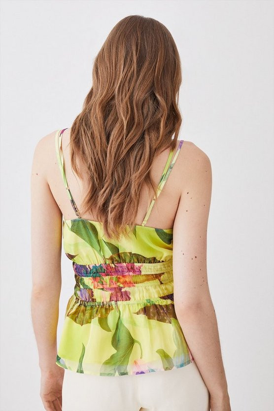 Tropical Orchid Strappy Shirred Woven Top