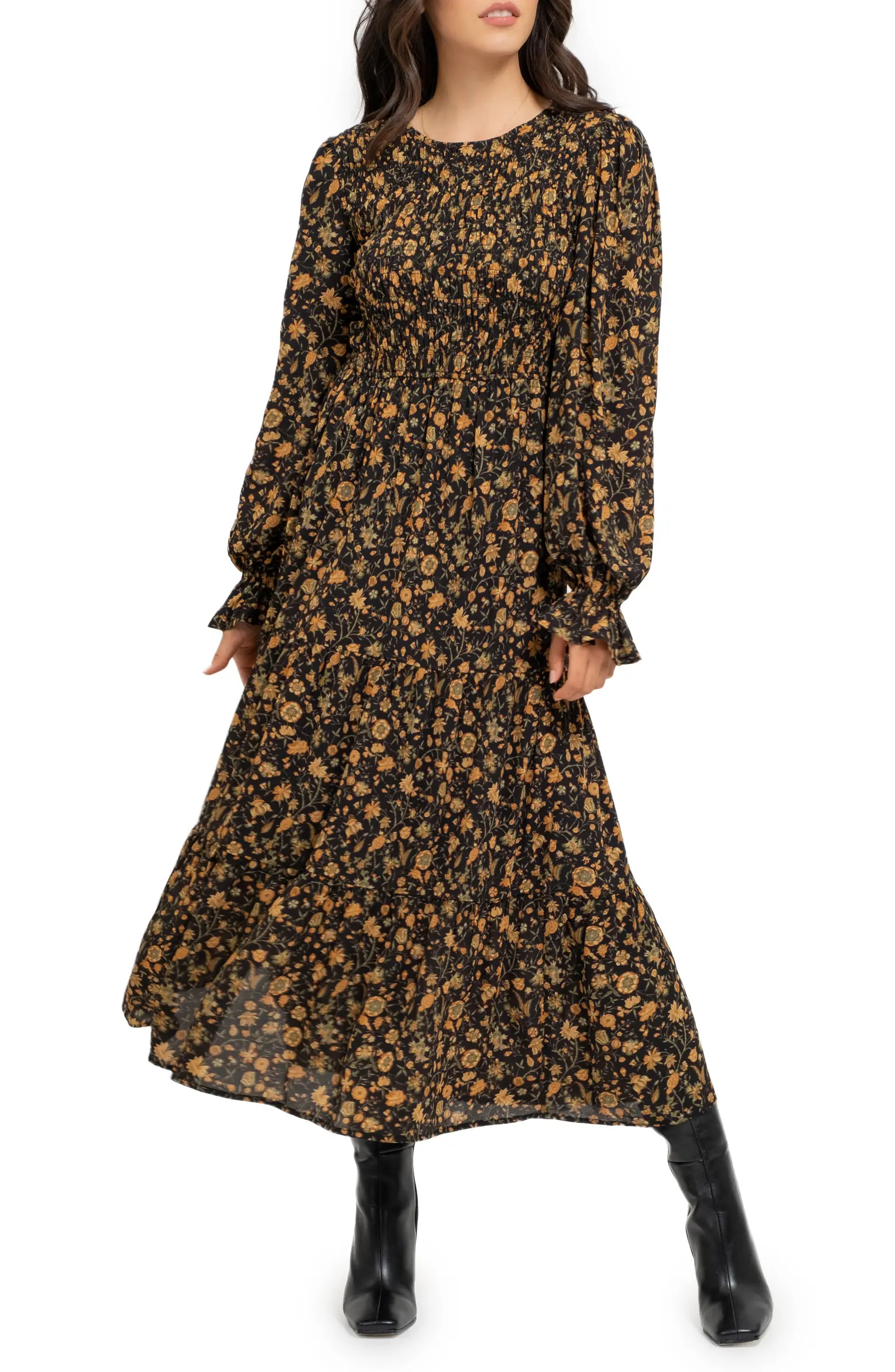 Floral Smocked Long Sleeve Maxi Dress