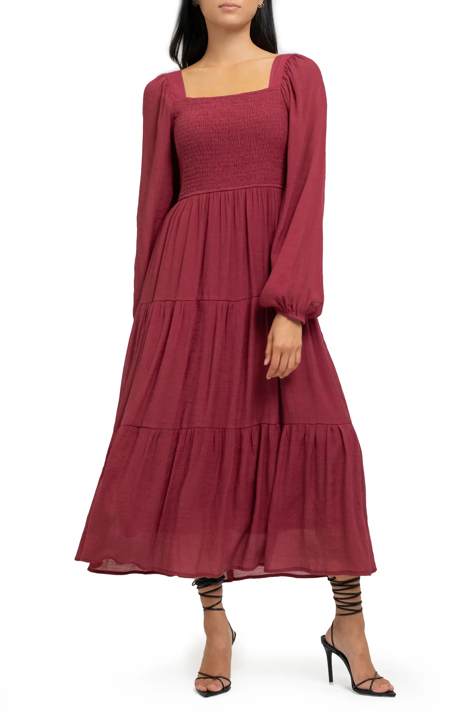 Smocked Long Sleeve Tiered Dress