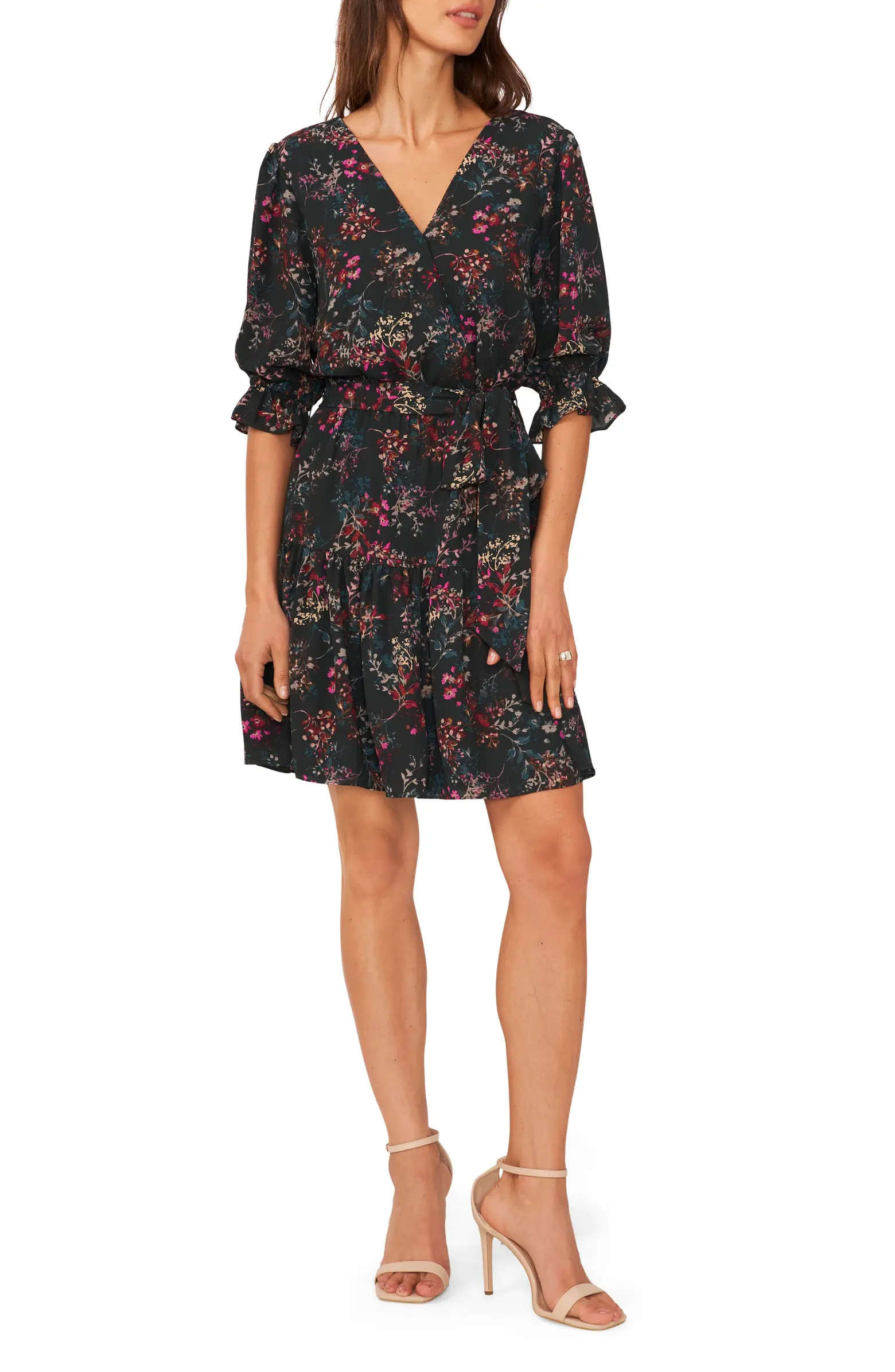 Surplice Three-Quarter Sleeve Minidress