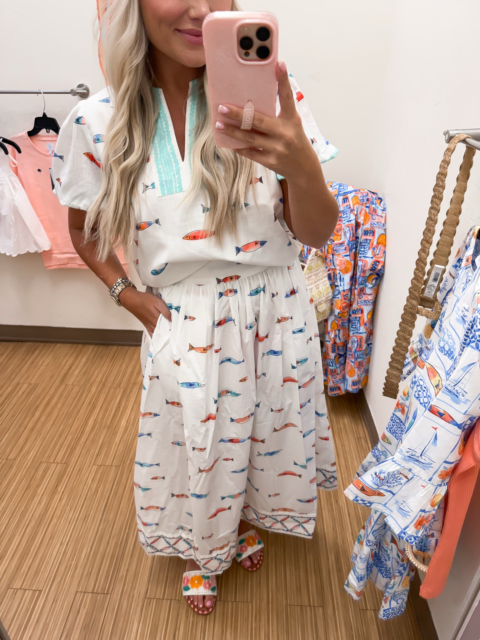 I swear if it has shells, seafood, or citrus on it…I’m already at checkout 🐟🍊🦞 The new Sewing Down South x Crown & Ivy @Belk  collection is SO cute - like dock-to-dinner, throw it on and go, coastal perfection with the cutest Charleston touch. The prints?! Fish, lobster, shells, fruit… I cannot. It’s giving summer in the South, it’s giving strolling King Street, it’s giving lowcountry but make it chic. #belkpartner #shopping