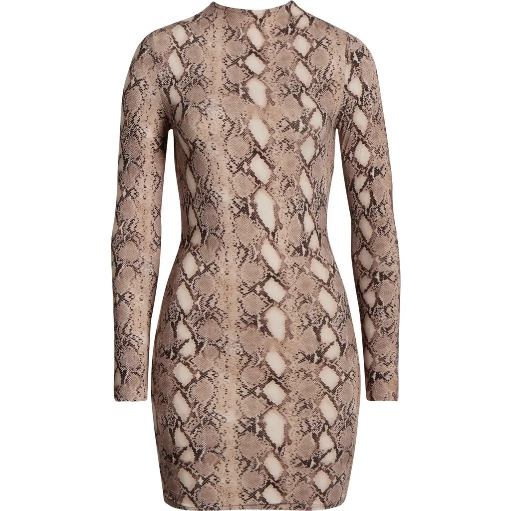 Naked Wardrobe Leopard Print Long Sleeve Body-Con Minidress in Nude Snakeskin at Nordstrom, Size Small
