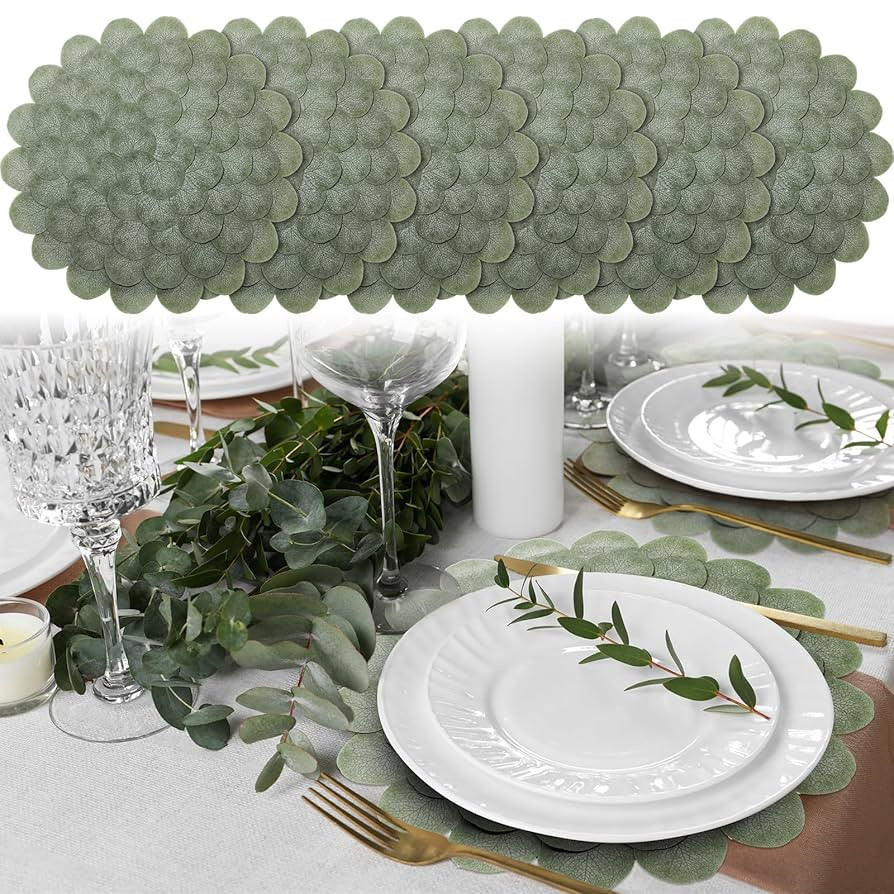 6 Pack Eucalyptus Leaves Round Placemats Wedding 20inch Large Washable Place Mats Summer Greenery...